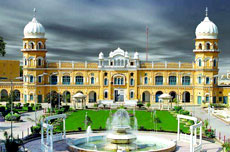 Commemorating the birthplace of Guru Nanak it is the premier shrine at Nankana Sahib. A room first built here by his son, Baba Lakhmi Das (1497-1555), more probably by his grandson, Baba Dharam Chand (1523-1618), was known as Kalu ka Kotha, lit. house of (Mahita) Kalu, father of Guru Nanak. Later it came to be known as Nanakayan, lit. Home of (Guru) Nanak. Maharaja Ranjit Singh (1780-1839), at the instance of Akali Phula Singh and Baba Sahib Singh Bedi, constructed the present building, a domed square sanctum with a pavilion in front standing on a spacious, raised platform, and made an endowment of about 20,000 acres of land for the maintenance of Guru ka Langar. The management remained with Udasi priests until the Shiromani Gurdwara Parbandhak Committee took it over after the gruesome events of 20 February 1921. With the partition of the Indian subcontinent in 1947 and the migration of Sikh population from Pakistan, the management of all Sikh gurudwaras in the newly created State, including those at Nankana Sahib, passed to the Waqf Board. The Government of Pakistan later allowed 15 Sikhs to stay in Nankana Sahib to perform the daily services in the shrines. In 1968 the number was reduced to 5. Now only a Granthi or scriptural reader and a few Sindhi Sikhs stay at Gurdwara Janam Asthan. Batches of pilgrims from India are occasionally allowed to visit with special permission from the Pakistan Government.